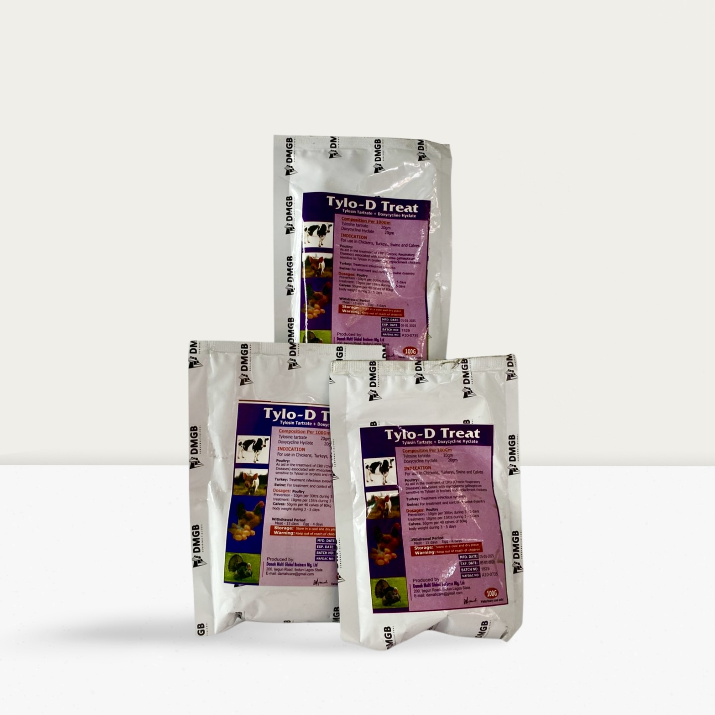 This powerful combination antibiotic formulation unites two complementary antimicrobial agents for enhanced efficacy against bacterial infections in animals. Tylosin Tartrate (a macrolide) targets gram-positive bacteria and Mycoplasma, while Doxycycline Hyclate (a tetracycline) provides broad-spectrum activity against both gram-positive and gram-negative pathogens.