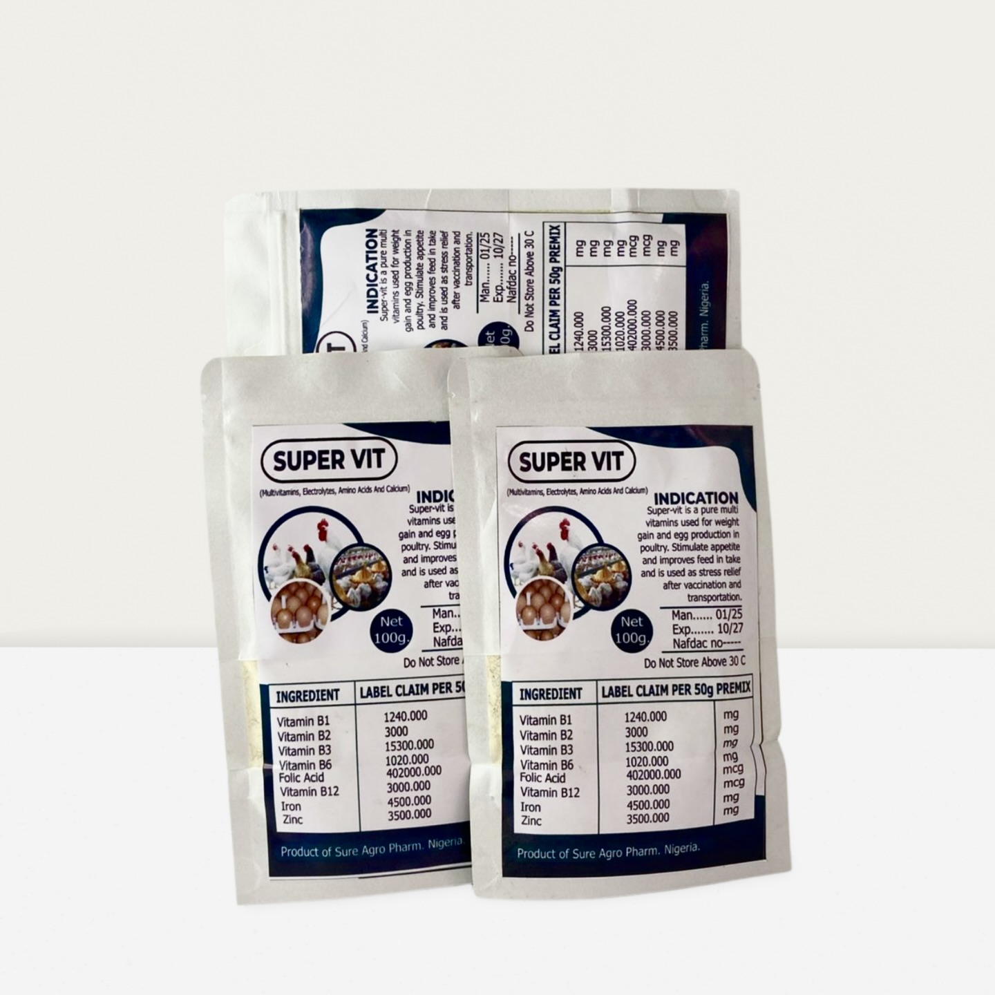A pure multi-vitamin used for weight gain and egg production in poultry. Simulate appetite and improves feed intake and is used as stress relief after vaccination and transportation